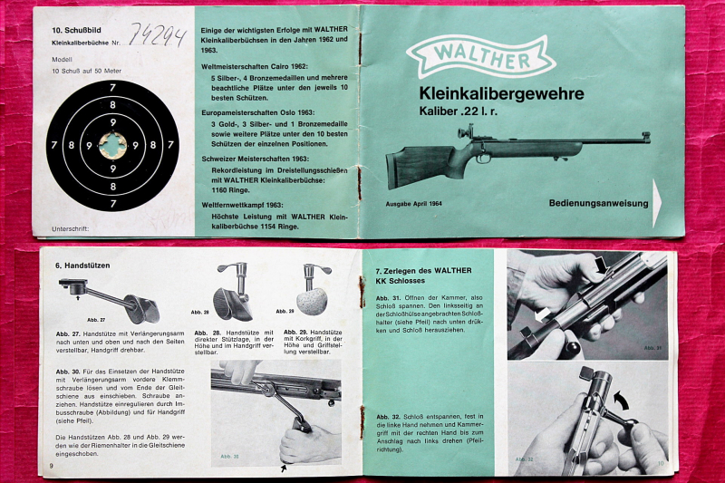 ORIGINAL Bedienungsanleitung WALTHER Kleinkalibergewehre. Ausgabe April 1964. Für die Modelle KKS-D, KKM, KKM II, KKM-Match, UIT-Standard.