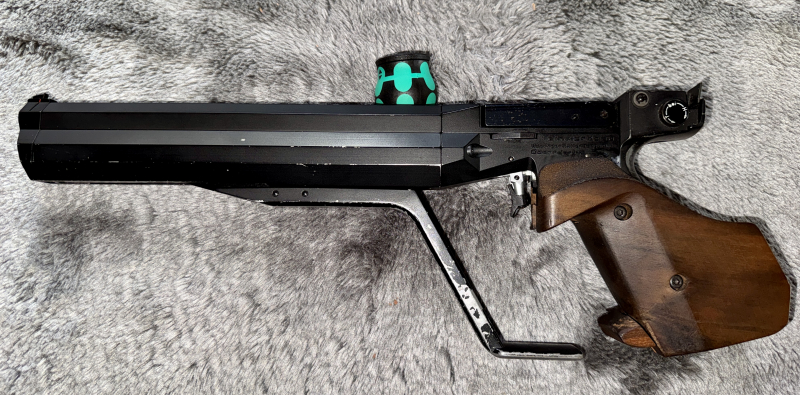 Hier eine Match Luftpistole Feinwerkbau Modell 100, Kaliber 4,5mm.