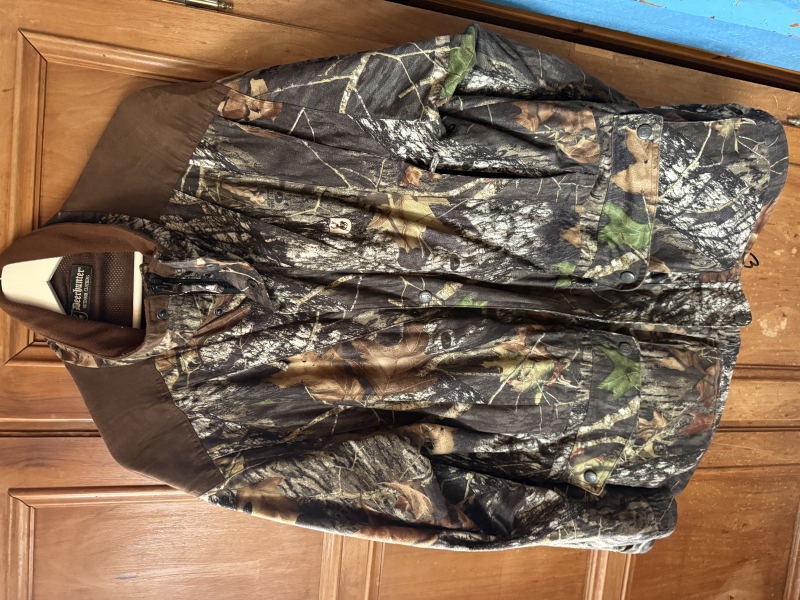 Deerhunter Ganzjahresjagdjacke für Ansitz und Pirsch. Keine Konfektionsangabe zu finden. Ich bin 182cm groß, wiege 88 Kilo, und trage normalerweise Gr.56. Mir passte die Jacke und ich konnte darunter noch eine leichte Fleecejacke oder Weste tragen. Die Jacke ist leicht gefüttert. Mit einer Fleecejacke drunter habe ich sie auch bei mildem Winterwetter getragen. Die Jacke ist relativ leise und hat eine samtweiche Oberfläche, Tarndruck Realtree, vorne doppelte Taschen mit Klappen, zwei seitliche Reissverschlusstaschen, Brusttaschen, Innentasche. Die Jacke ist ohne Beschädigung oder Flecken. Keine Risse, keine Löcher, das Futter ist intakt, alle Nähte intakt, Reissverschlüsse funktionieren. Nichtraucherhaushalt.