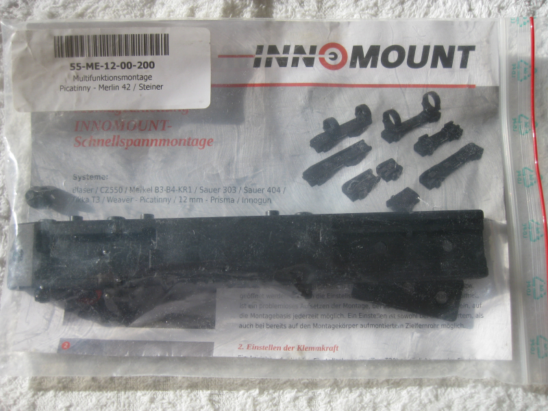 Multifunktionsmontage von INNOMOUNT 55-ME 12-00-200 Picatinny -Merlin-42 / Steiner, Nagelneu, Original verpackt für Blaser/ CZ 500, Merkel B3-B4-KR 1-/ Sauer 303 / Sauer 404 / Tikka T3 / Weaver-Picatinny / 12 mm Prisma / Innogun / Neupreis 430 €-