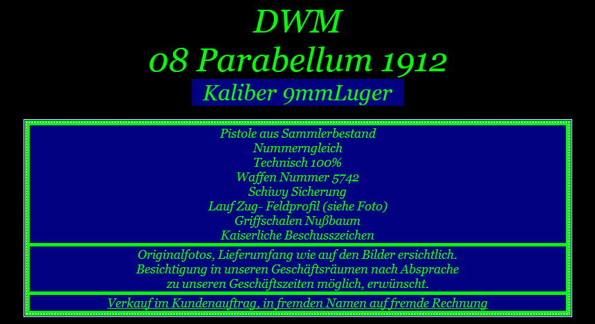 Bei der angebotenen Ware handelt es sich um eine gebrauchte Waffe, die einen historischen Wert als Sammlerstück hat und zudem als Antiquität zu bezeichnen ist.