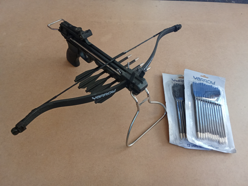 Hier gibt es eine Pistolenarmbrust der Marke YARROW. Zusätzlich gibt es 24 neue Pfeile. Sie stammt aus einer Haushaltsauflösung und findet bei mir keine Anwendung. Die Funktion ist gegeben, es ist kein Defekt feststellbar. Die Waffe ist eingestaubt und hat leichte Schmutzanhaftungen. Sie ist ab 18 Jahren frei verkäuflich und EWB frei. Versand erfolgt per DHL, versichert mit persönlicher Übergabe. Bitte beachten Sie die weiteren Inserate. „Der Kaufgegenstand wird unter Ausschluss jeglicher Gewährleistung verkauft. Der Ausschluss gilt nicht für Schadensersatzansprüche aus grob fahrlässiger bzw. vorsätzlicher Verletzung von Pflichten des Verkäufers sowie für jede Verletzung von Leben, Körper und Gesundheit.“