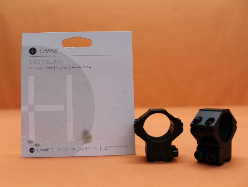 HAWKE Montageringe Match 1" medium (21001) BH=13mm Alu schwarz matt mit 2 Schrauben für 9-11mm Prismenschiene (Aufkipp-Montageringe).