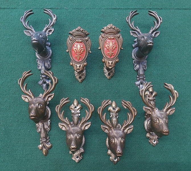8 teiliges Konvolut Waffenhalterung, 6x Hirschkopf und 2x Wappen Motiv defekt, für Bastler!