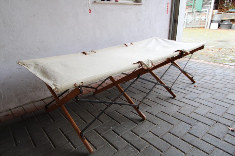 Das Bett ist altersbedingt in einem guten Zustand. 5 kleinere Nähstellen und Signatur eines Vorbesitzers