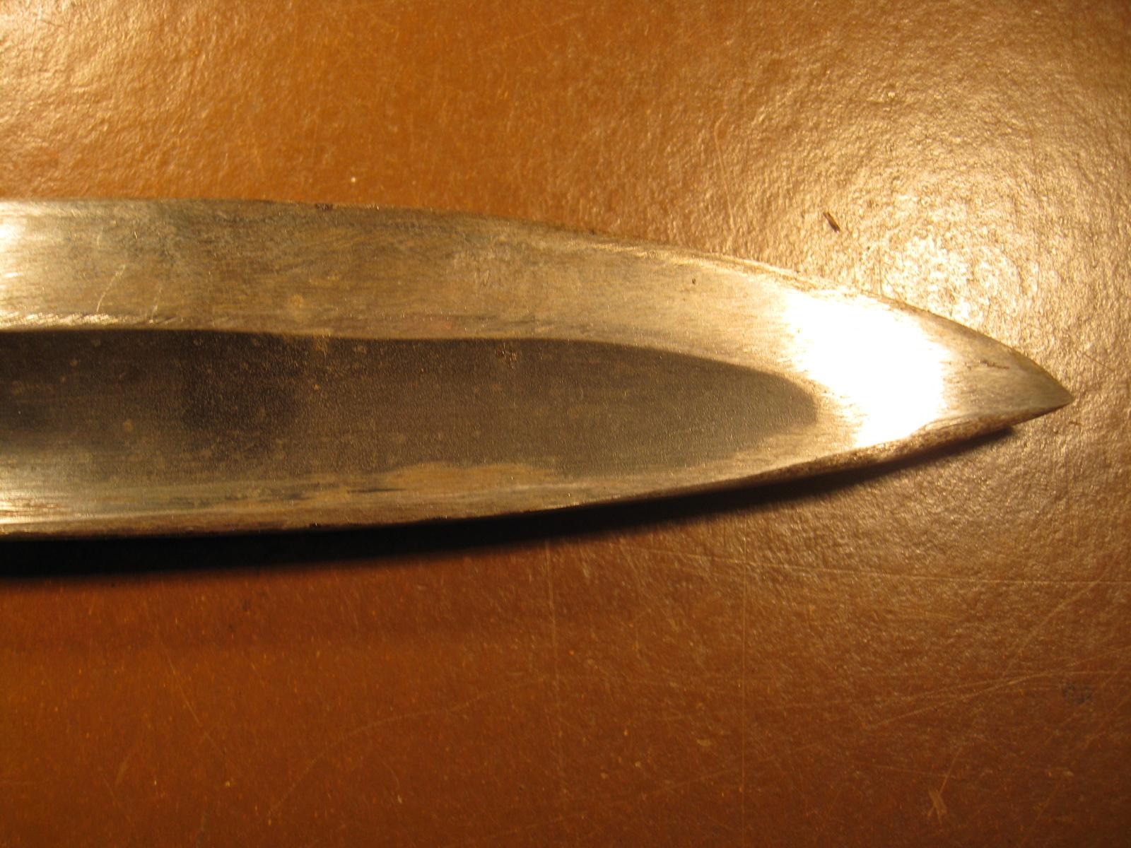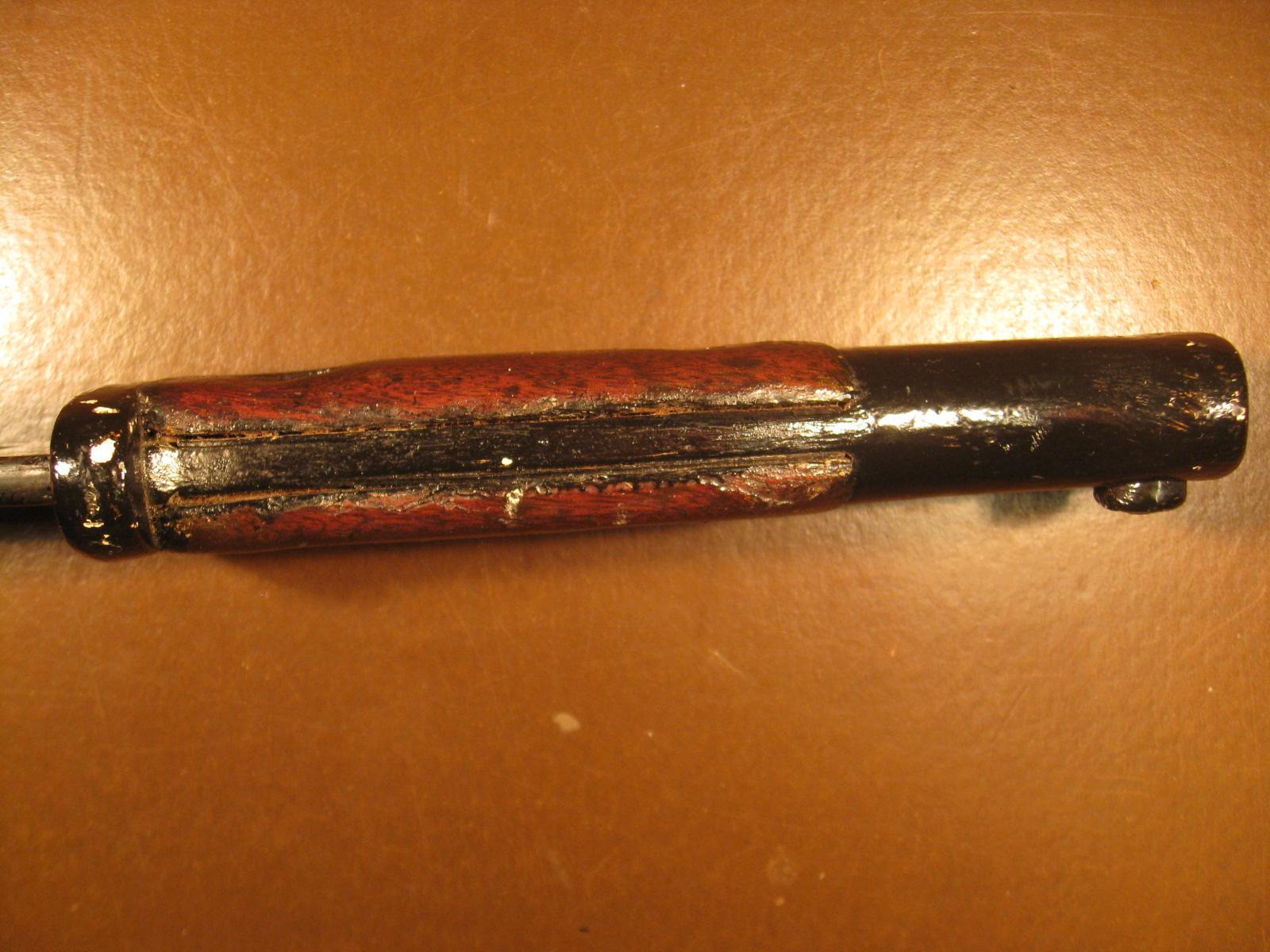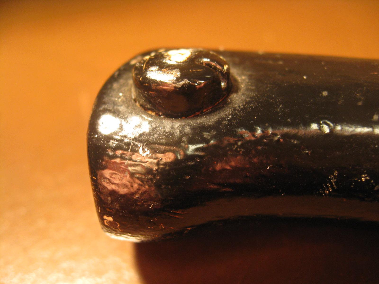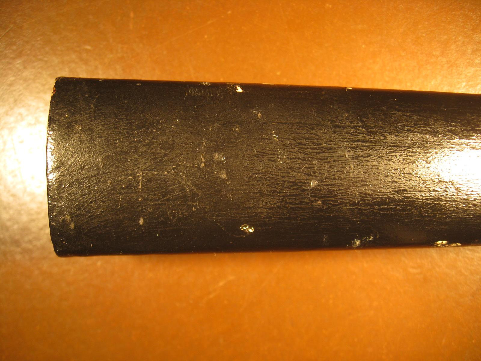Das Stück ist ziemlich dick mit Farbe bepinselt. Auch der Griff ist mit Lack (?) überzogen.