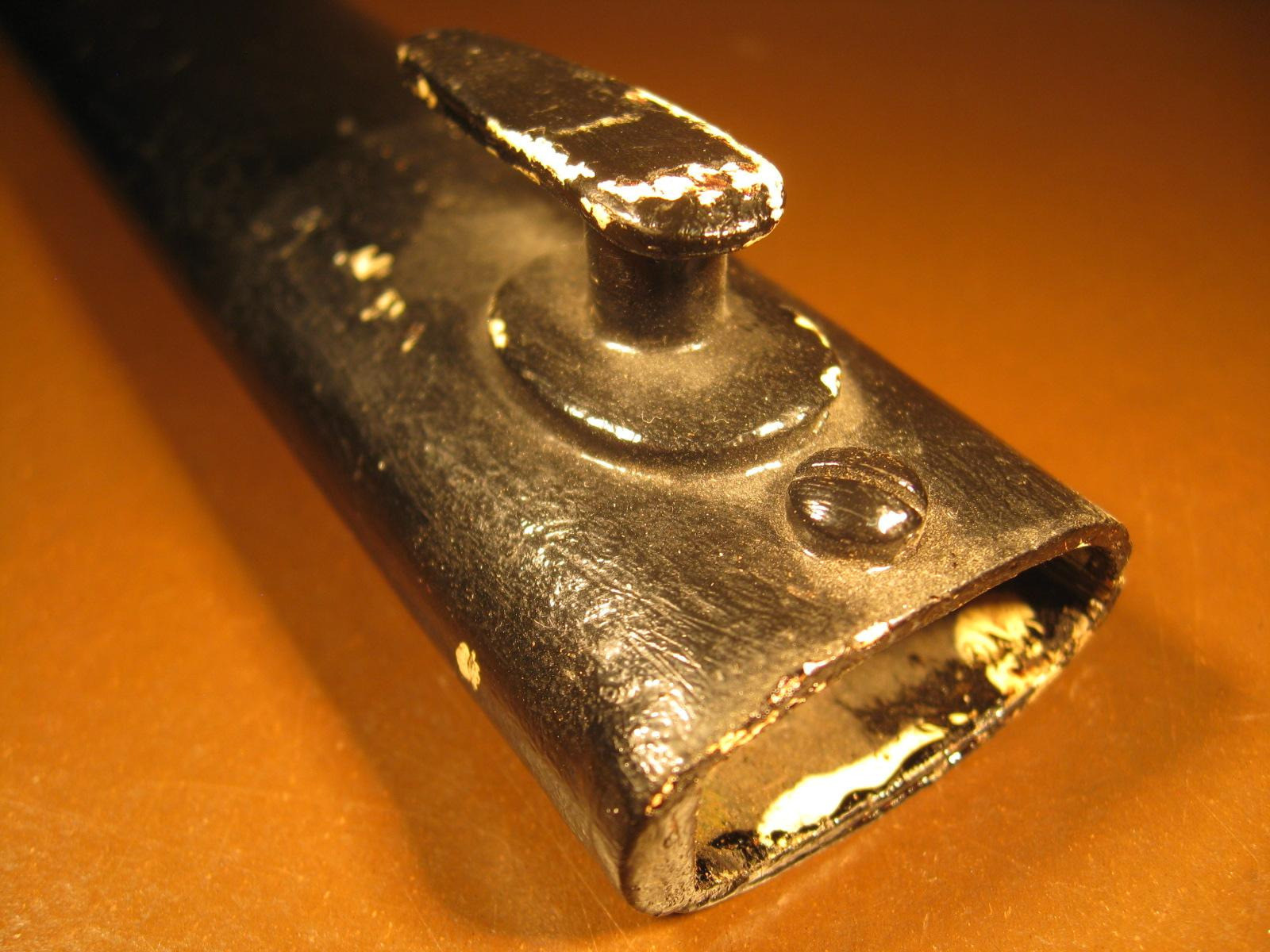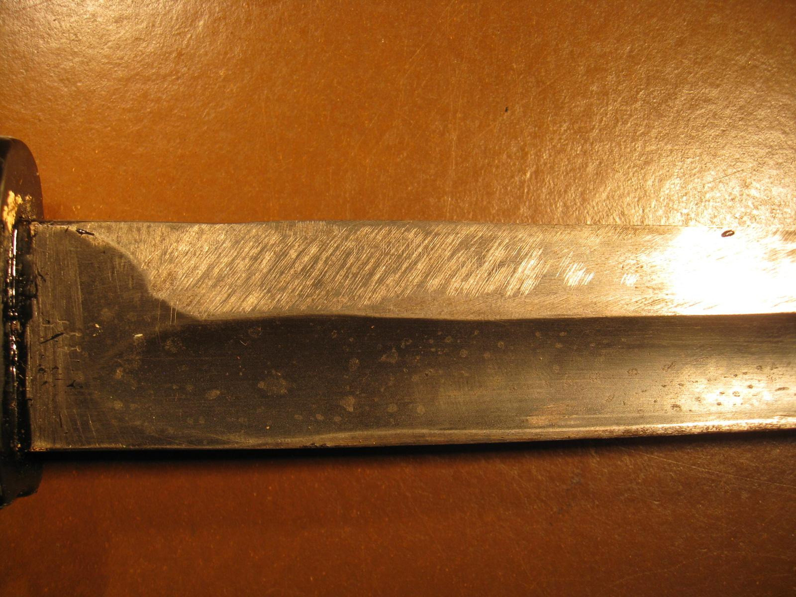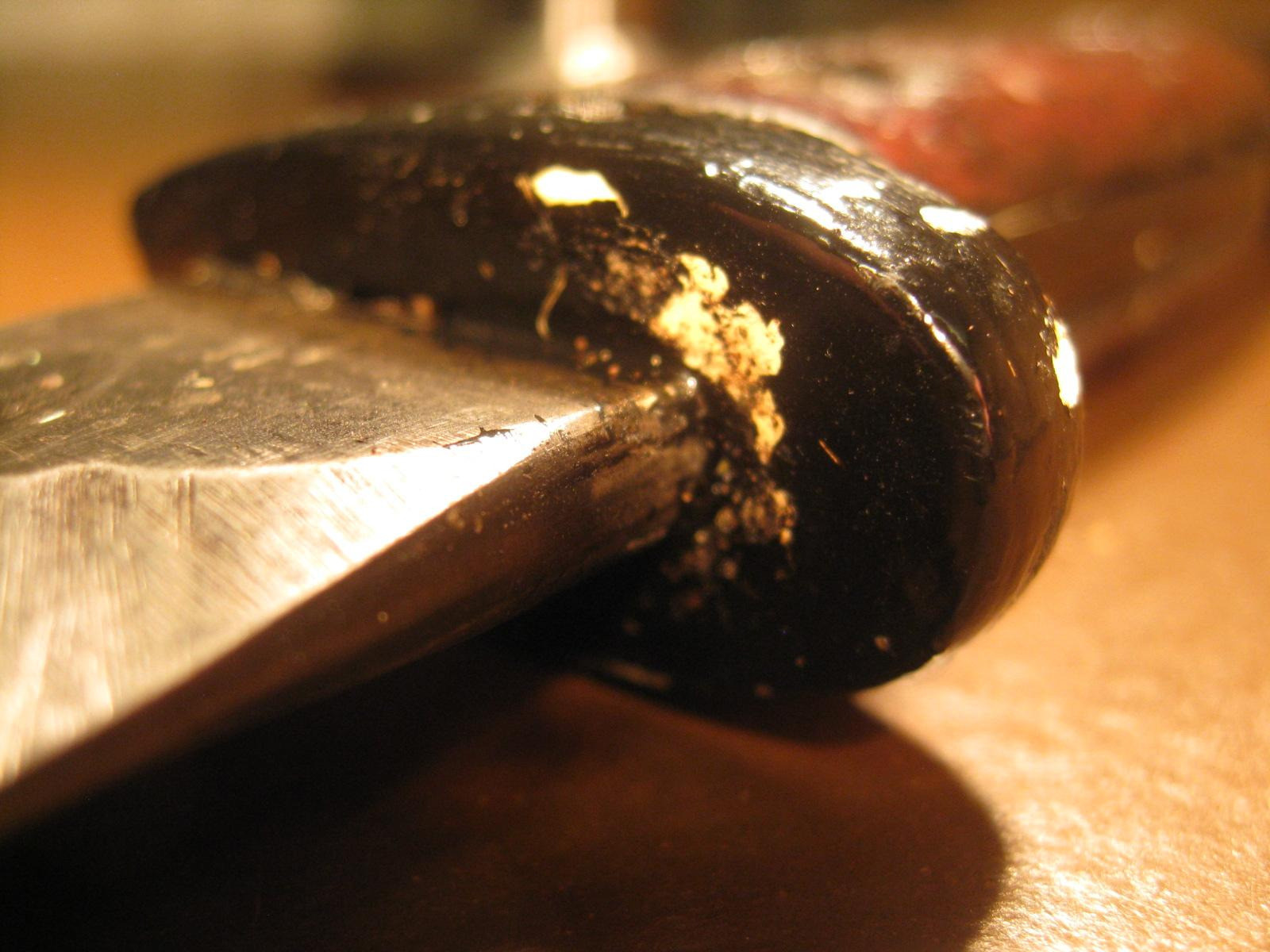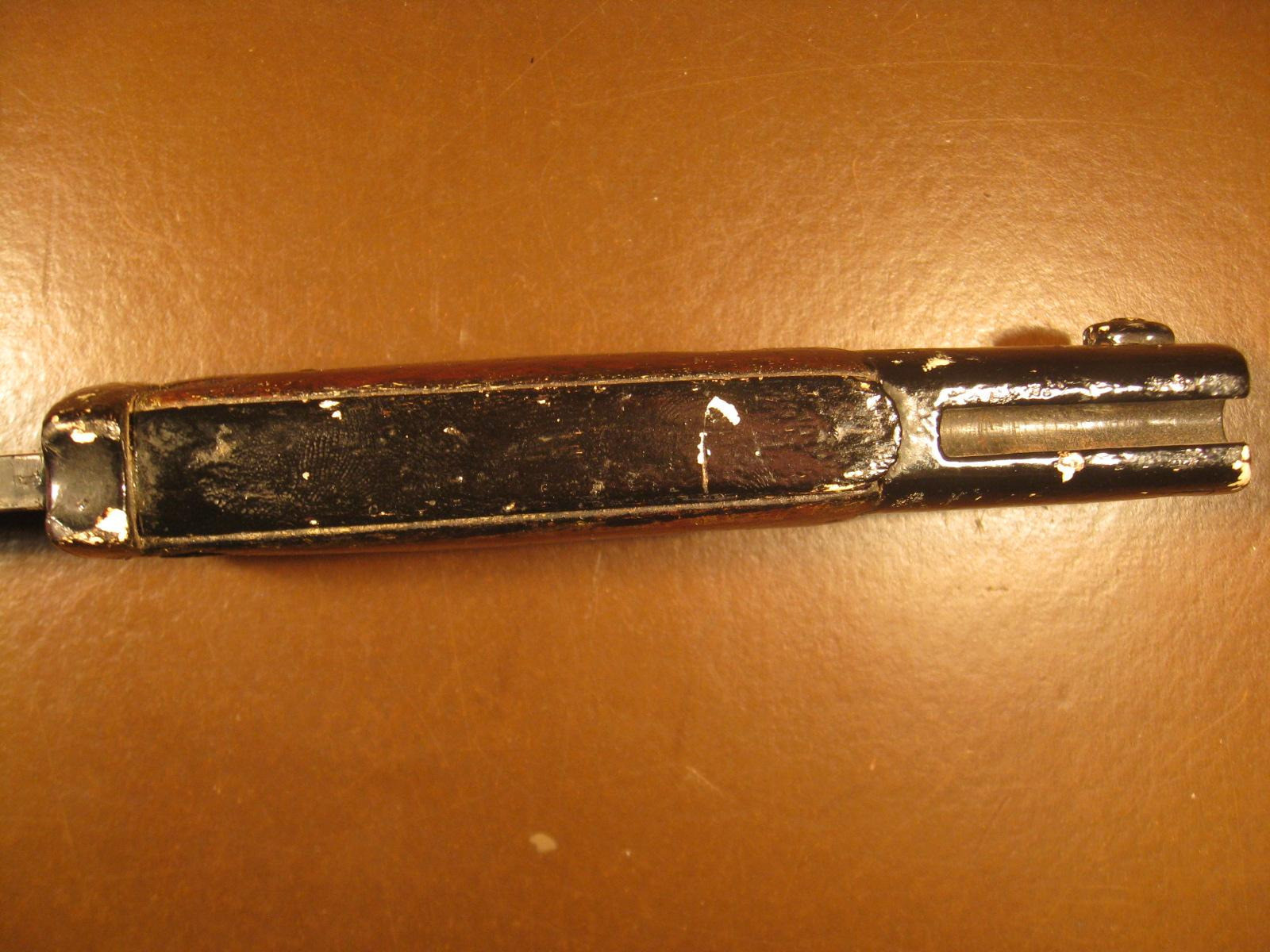 Das Stück ist ziemlich dick mit Farbe bepinselt. Auch der Griff ist mit Lack (?) überzogen.