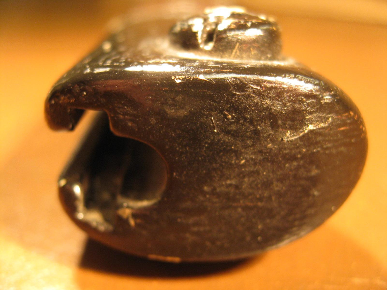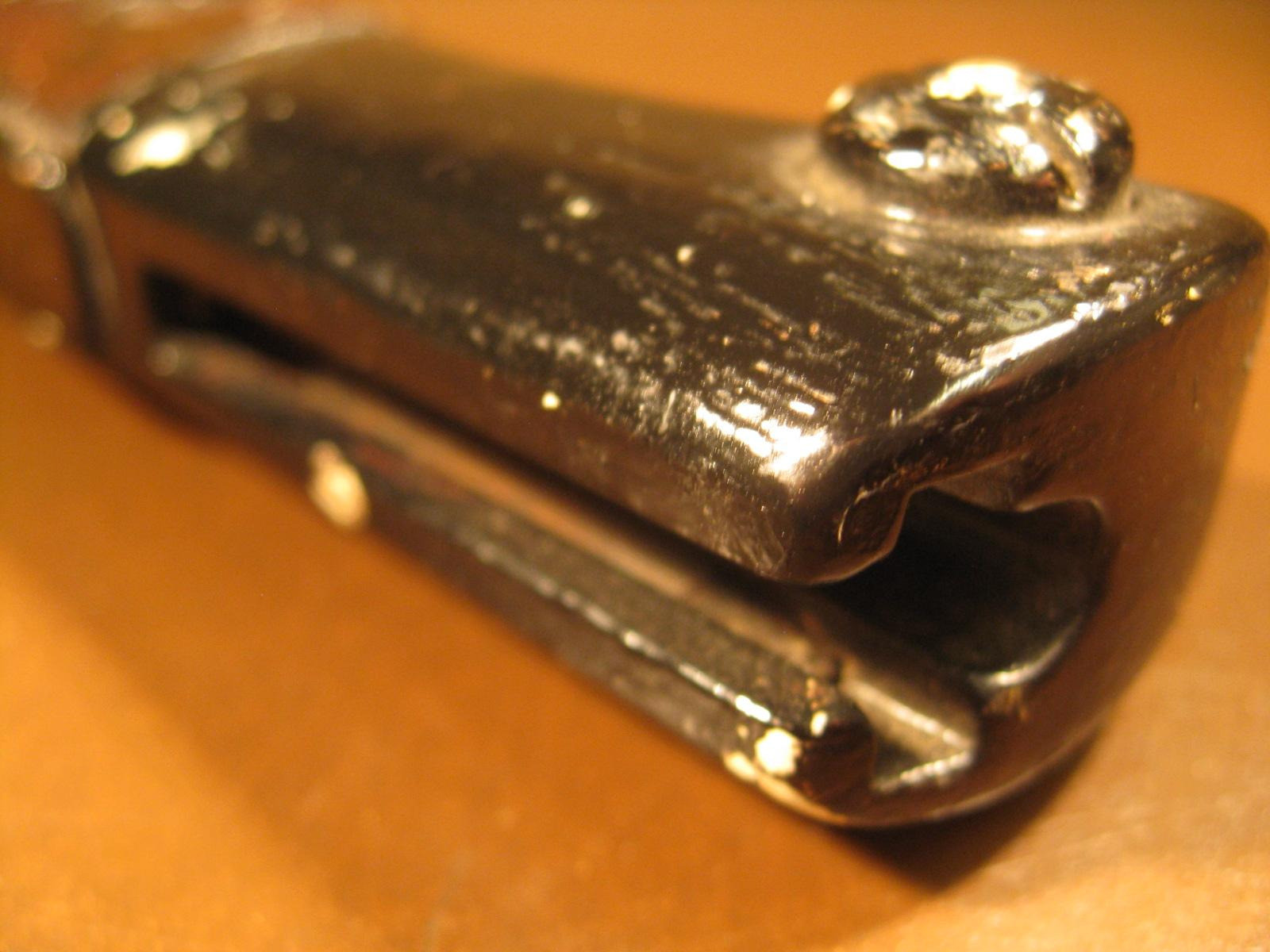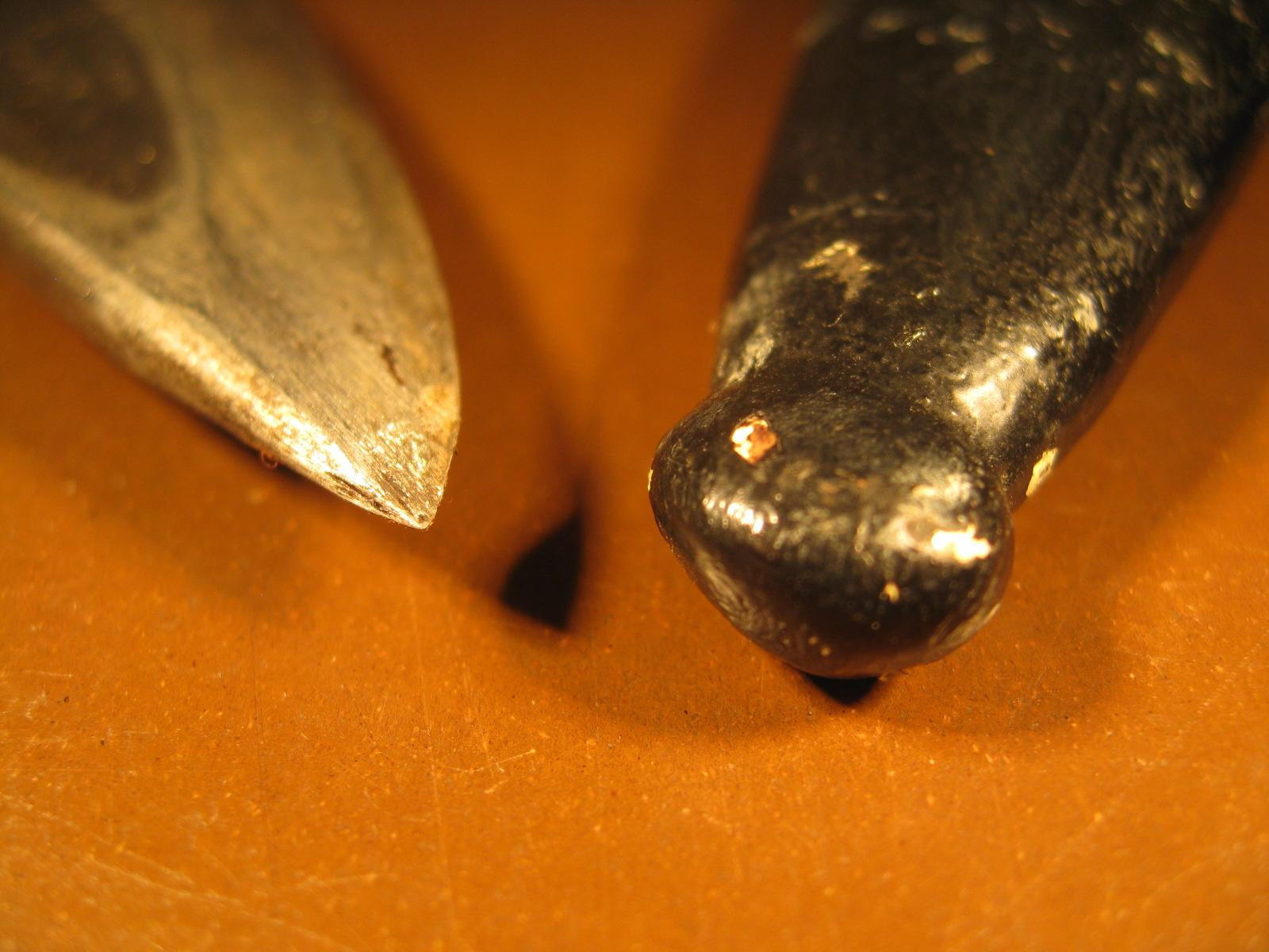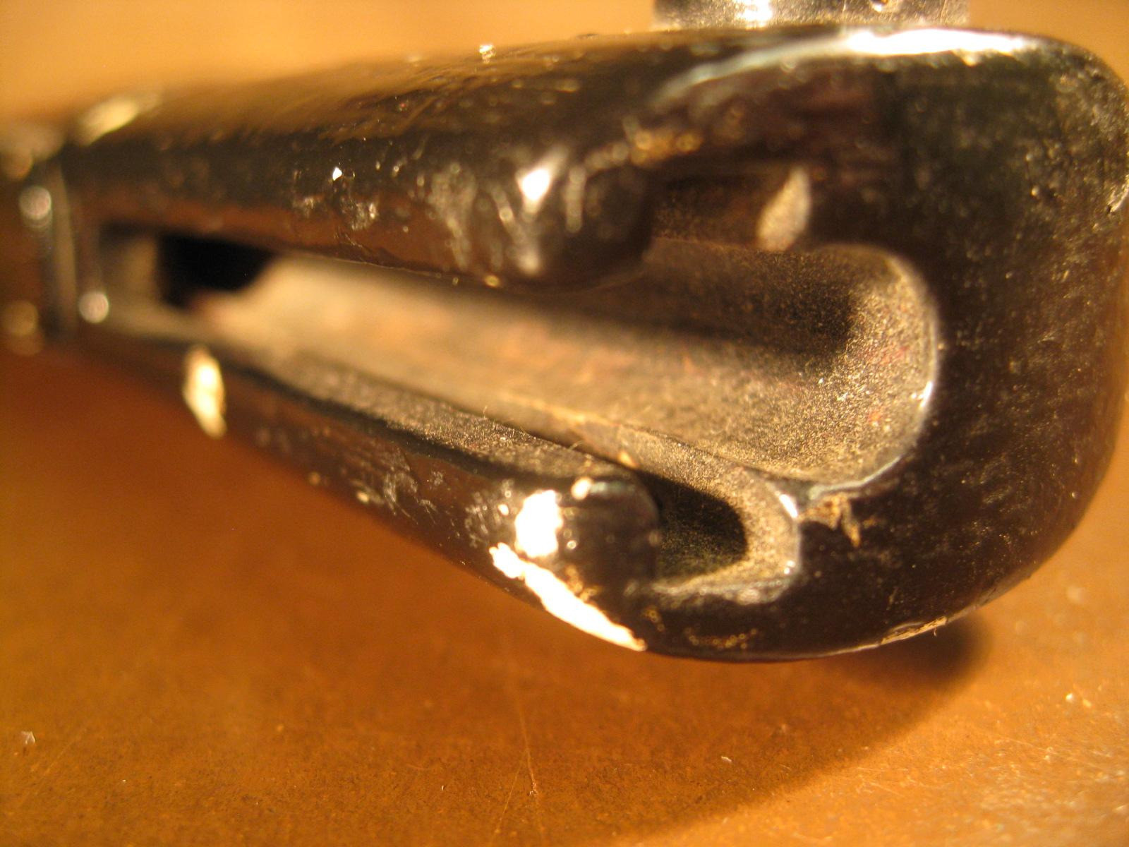 Das Stück ist ziemlich dick mit Farbe bepinselt. Auch der Griff ist mit Lack (?) überzogen.