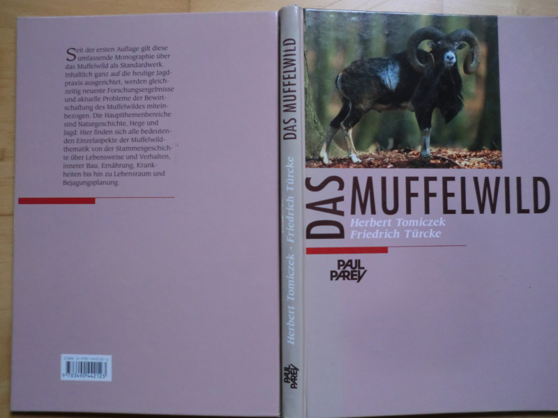 DAS MUFFELWILD - Naturgeschichte, Hege, Jagd - von Dr. Herbert Tomiczek und Dr. Friedroch Türcke, Verlag Paul Parey 1995, 126 Seiten mit 140 Einzeldarstellungen in 87 Abbildungen, davon 27 farbig, und 20 Tabellen - Inhalt u.a.: Herkunft und Verbreitung / Genetik, Kreuzungen des Muffelwildes / Erscheinung und Lebensweise / Standorttreue und Verhalten gegenüber anderem Wild / Wildschäden / Gefahren, Feinde, Krankheiten / Grundlage der Hege / Muffelwild in Wildgehegen / Jagdausübung / Wildstandsermittlung / Wilddichte / Geschlechterverhältniss / Zielalter / Bejagungsrichtlinien / Wahlabschuß / Nachsuche / Wildversorgung und Trophäenbewertung mit Meßanleitung / und anderes mehrr, diverse Unterkapitel- Guter Zustand