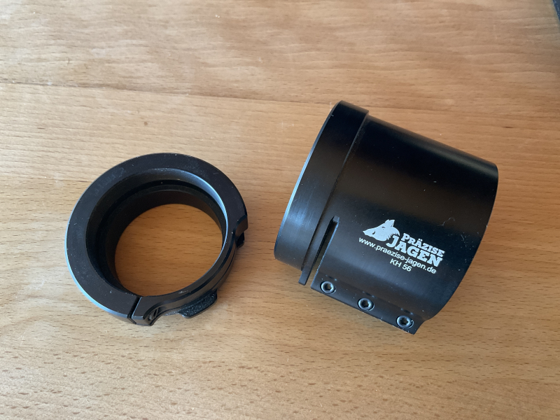 Verkaufe Präzise Jagen „Komplett-Set“ bestehend aus Klemmhülse KH56 (passt für viele 50er Zielfernrohre diese haben in der Regel einen Außendurchmesser von 56mm am besten nochmal messen) und Duo-Verbinder mit M52x0,75.