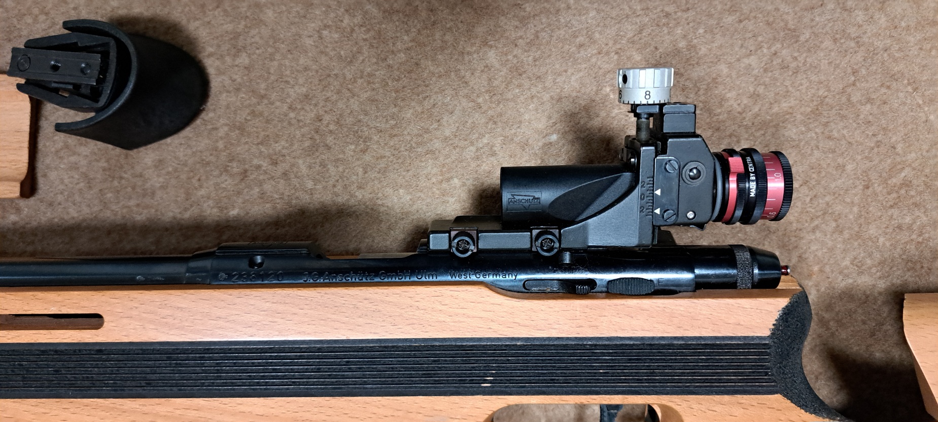 und Schießriemenhalter von Anschütz und Buchenholzauflageschiene.