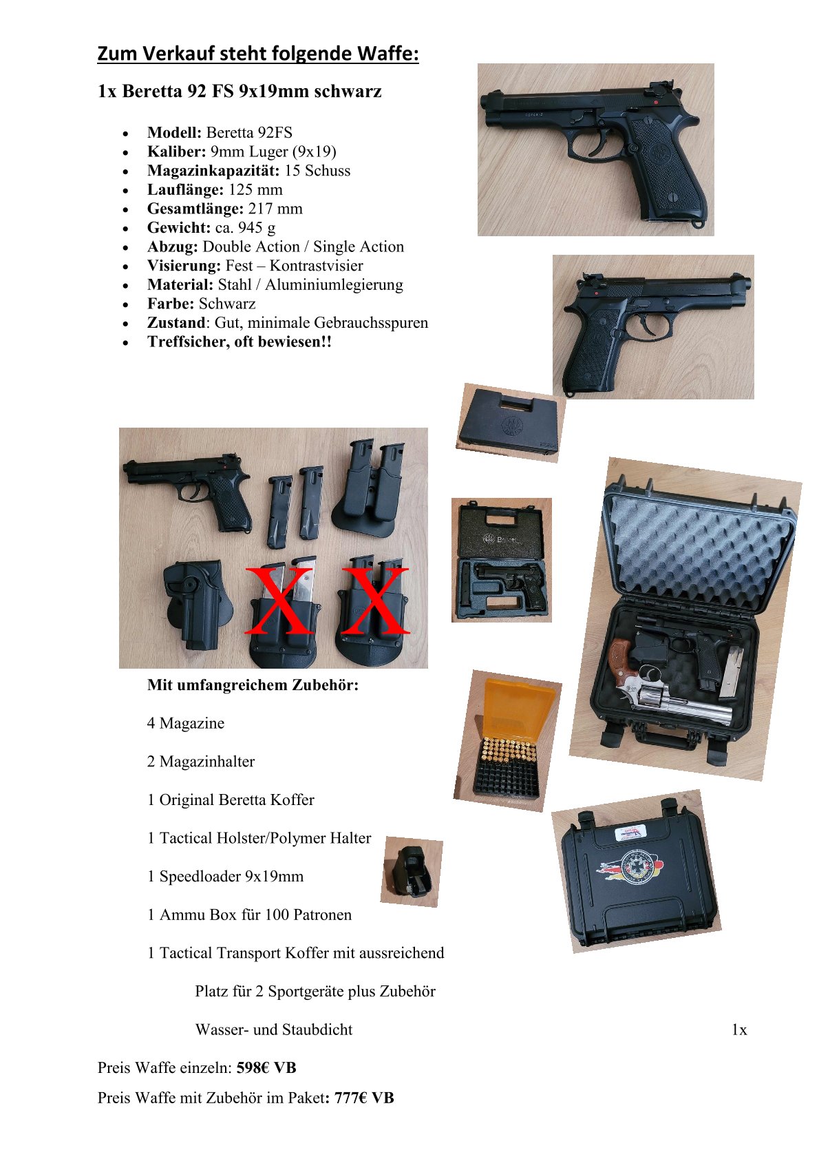 Zum Verkauf steht hier die beliebte Beretta 92 FS in schwarz im Kaliber 9 mm.