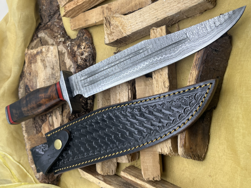 - Typ: Bowie-Messer aus echtem, mehrlagigem Damaststahl (über 200 Lagen)