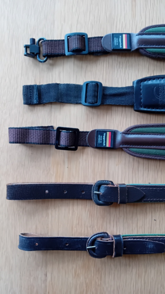 Gewehrriemen, 5 Stück, verschiedene Ausführungen.