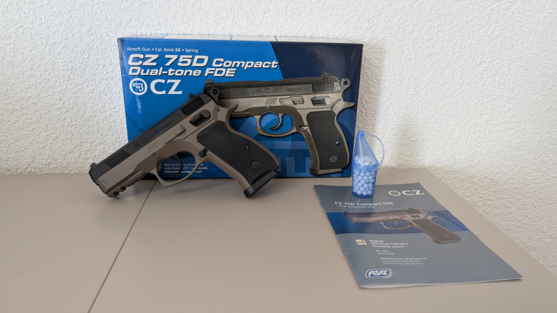 Sie bieten auf eine gebrauchte CZ 75 D Compact - DualTone Federdruck Softair in neuwertigen optischen und technisch einwandfreien Zustand.