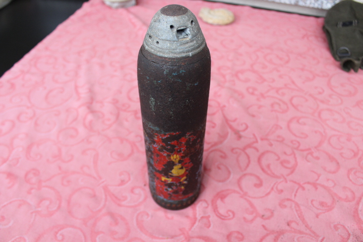 Deutsche WKI 7,7cm Deko Granate. Kein Bodenfund. Noch reste der Bemahlung.