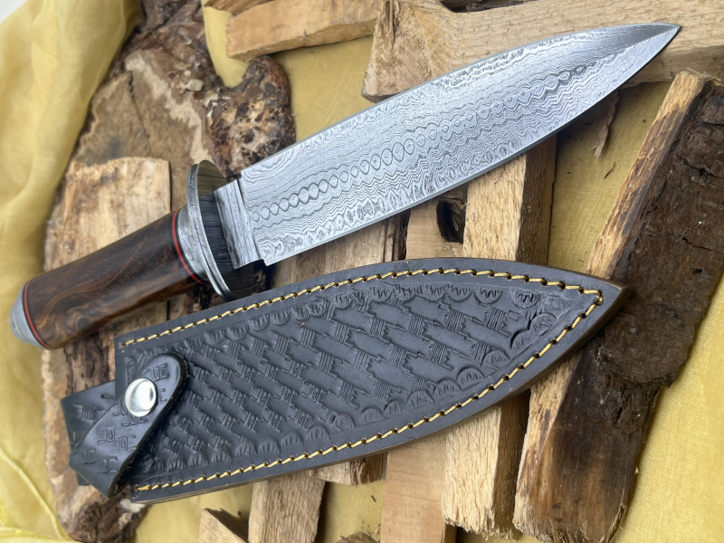 - Typ: Doppelschneidiger Dolch aus echtem, mehrlagigem Damaststahl (über 200 Lagen)