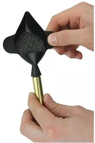 Durch die spezielle Ausformung kann die Pulverschale auch zum Befüllen der Hülsen verwendet werden