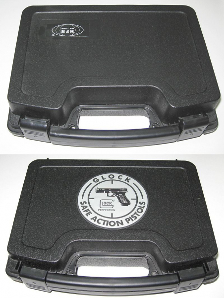 Kurwaffenkoffer in schwarz von MFH - mit Glock Aufkleber - es ist KEIN Original Glock Koffer. Neuwertiger Zustand . Scharniere und Verschlüsse funktionieren alle Tadellos - ist abschliessbar mit kleinem Schloss - dies gehört nicht zum Lieferumfang; Schaumgummi TOP - Innenmaße: 25 cm breit - 14 cm Hoch an der schmalsten Stelle