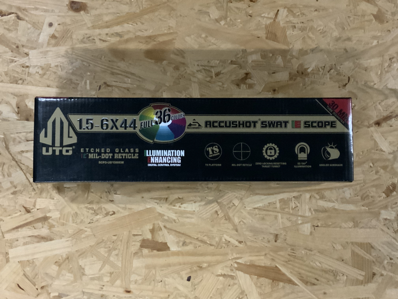 Artikelnummer: SCP3-UG156IEW Version mit fein eingeätzten Absehen - 30mm Tubus mit bester Emerald Lens Vergütung für maximale Lichtdurchlässigkeit - vollständig versiegelt, Stickstoff gefüllt, stoßfest und beschlägt nicht bei Regen - 1,5- 6fache Vergrößerung, ausgestattet mit Schnellverstellung - innovative EZ-TAP Beleuchtung, IE Multi Color Modus mit 36Farben - dank IE 36 Farben haben Sie für jeden Hintergrund die passende Absehenbeleuchtung - Verstelltürme mit 1/4 MOA Verstellschritten - die integrierte Sonnenblende gewährleistet beste Sichtverhältnisse - Mil Dot Absehen, Flip- Staubschutzkappen - Gewicht 720g ohne Montage, Länge 35,5cm - inkl. 22mm Weavermontage und UTG Montage-Adapter für 11 mm Prismenschiene, Beschreibung und 2 CR2032 Batterien