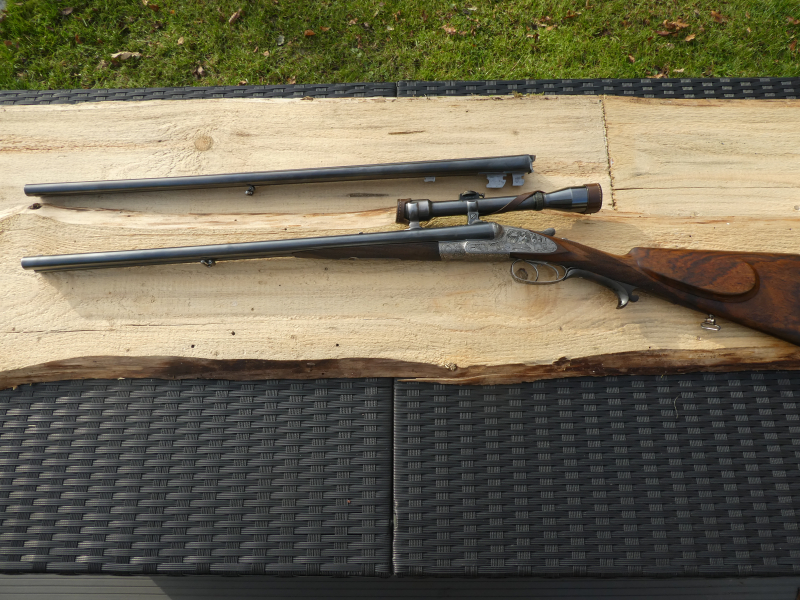 Büchsflinte Anschütz Merkel mit Seitenschlössern , 9,3x72R inkl Wechellauf 16/65 ca 100 Jahre alt