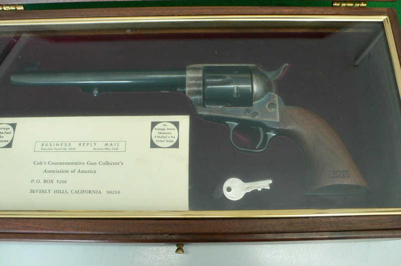 Die Waffe wird angeboten im Original-Holzkoffer, abschließbar, mit den Verschneidungen der Firma Colt, siehe Foto.