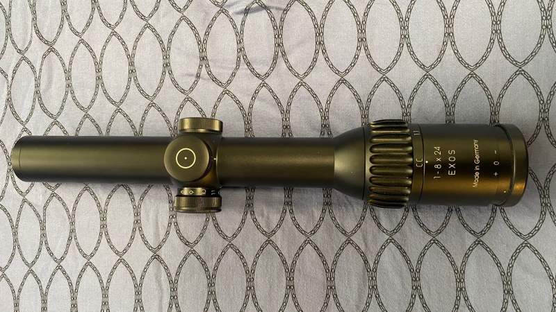 Bei dem 1-8x24 aus der Exos-Linie befindet sich das Absehen und die FlashDot-Beleuchtung in der zweiten Bildebene und bleiben deshalb konstant beim Vergrößerungswechsel.