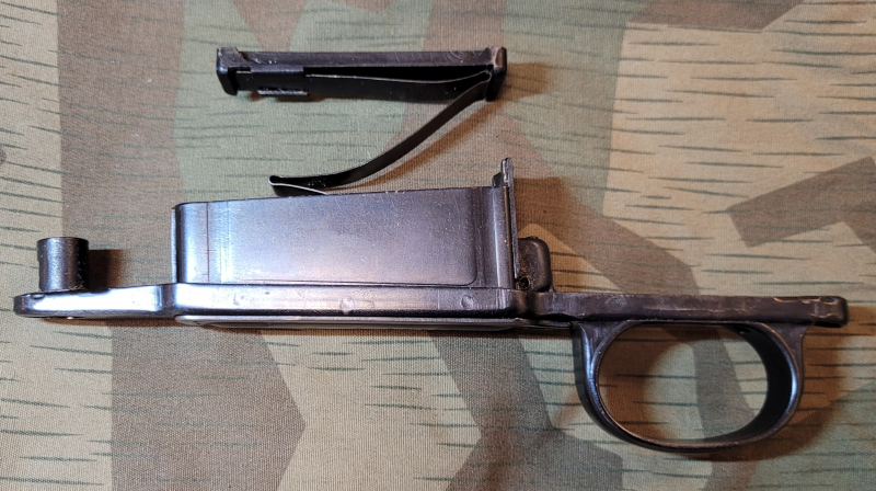 Magazinkasten für späte K98k aus Mauserfertigung in Blechprägeausführung. Nicht nummerngleich! Kriegsmodell.