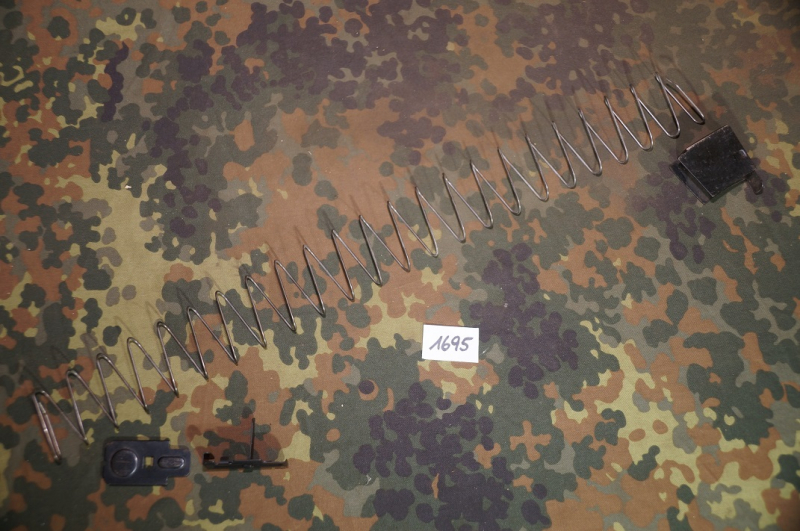 Achtung aufgepasst: Sie bieten hier auf ein original Ersatzteile Set für AK47 Magazine (je 1 x Magazinboden, Magazinbodensperre, Zuführer und Magazinfeder für 30-Schuss Magazin). Zustand, siehe Foto. Sie erhalten exakt die abgebildeten Ersatzteile. Alle Angaben nach bestem Wissen und Gewissen. Bitte beachten Sie auch unsere weiteren Auktionen. Viel Spass beim Bieten.
