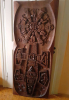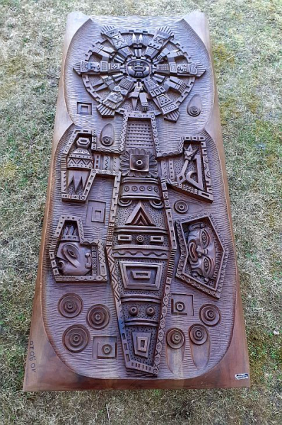 Eine handgeschnitzte Holzskulptur des ecuadorianischen Künstlers Luis Potosi (1937 -). Künstlerplakette auf der Unterseite.