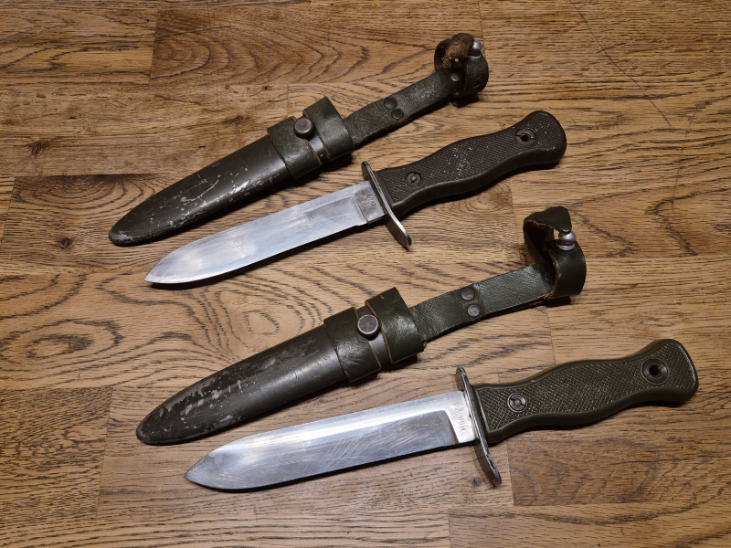Sie Bieten hier auf zwei Bundeswehr Feldmesser / Kampfmesser mit Scheide
