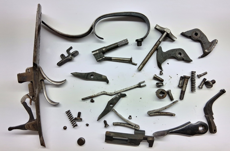 Angeboten ist ein Konvolut Ersatzteile Kleinteile für Doppelflinte Sauer & Sohn DF Flinte Kal. 16/70. Teile Freie Teilesatz.