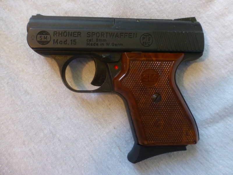 Schreckschusspistole SM Mod. 15 (Rhöner) Kal. 8mm - Guter Zustand, fast wie neu, scheint ungeschossen zu sein - mit Zubehör - aber kein Abschussbecher - Trockenfunktion funktioniert - Siehe Bilder. - Privatverkauf!