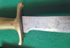 Seltenes badisches Artillerie Faschinenmesser M 1854. Messing Griffstück, Klinge mit 2 Nieten und oberen Vernietknopf befestigt. Auf der Parierstange oben gestempelt A 1974 " Artillerie Waffe Nr.1974 Festungs-Artillerie Raststatt. Auf Parierstange badische Punze, auf Gegenseite 55. Klinge auf der Fehlschärfe badische Punze und Hersteller GEBR. WEYERSBERG SOLINGEN. Dazugehörige geschwärzte Stahlscheide mit aufgelötetem Tragehaken. Sehr guter Zustand für das Alter. Privatauktion ohne Gewährleistung, keine Garantie, keine Rücknahme