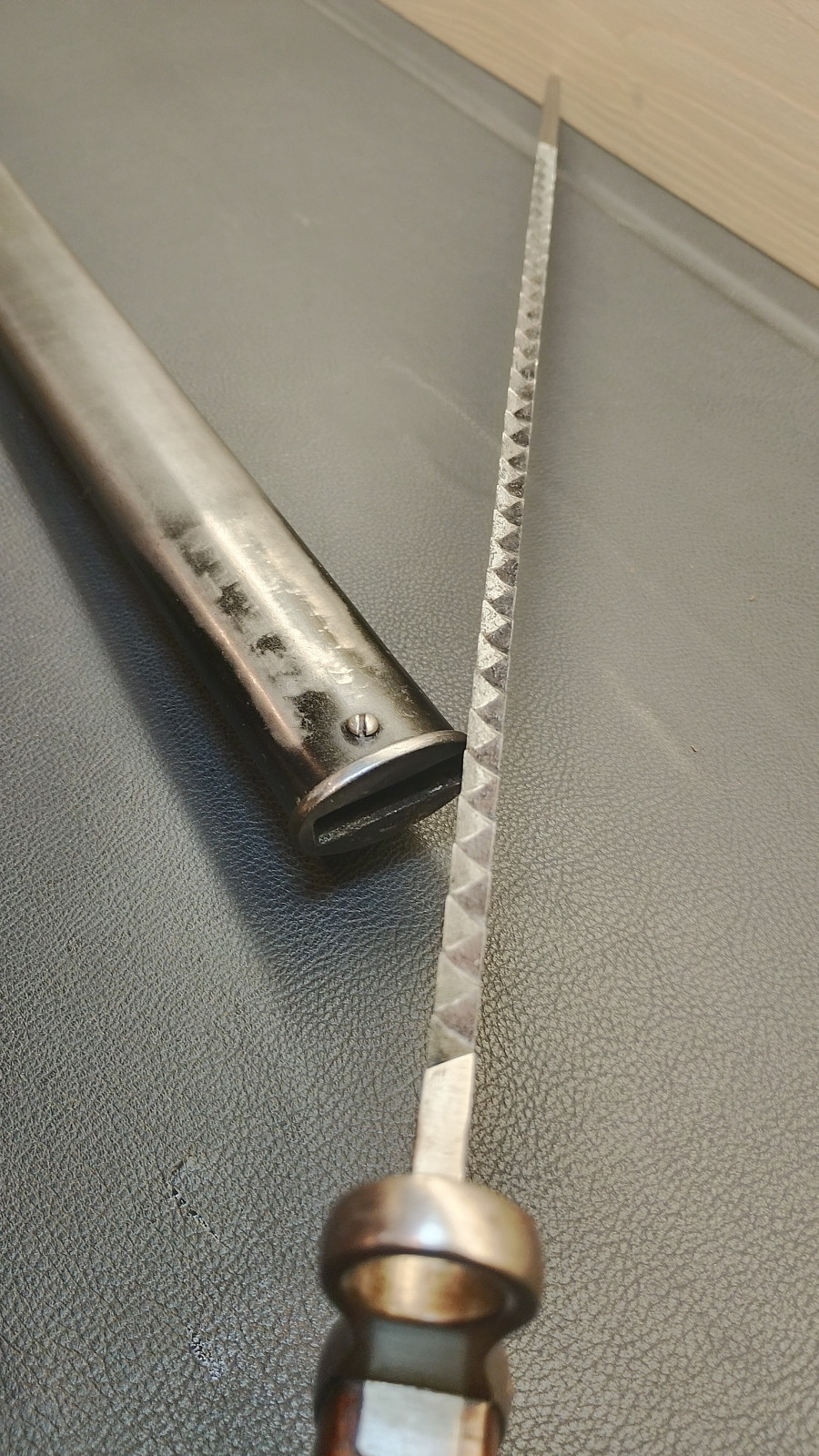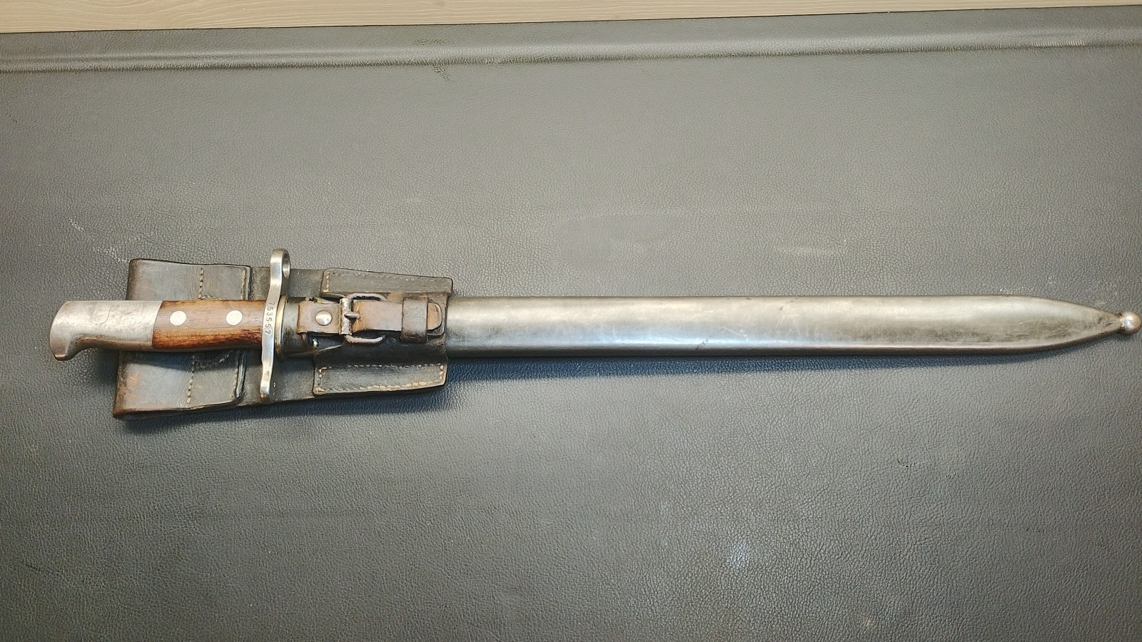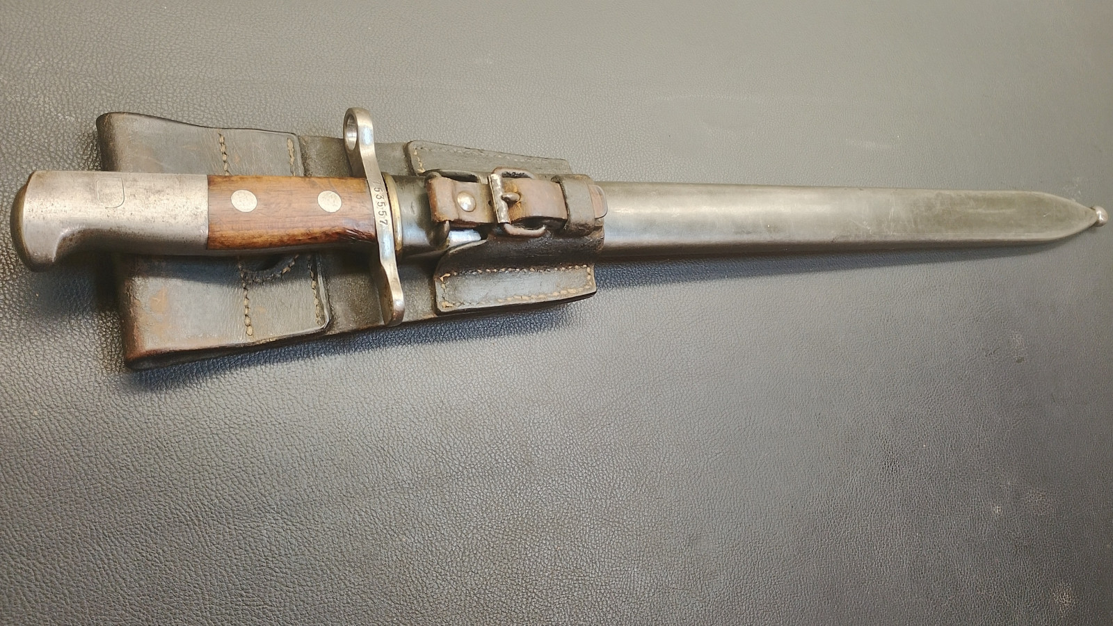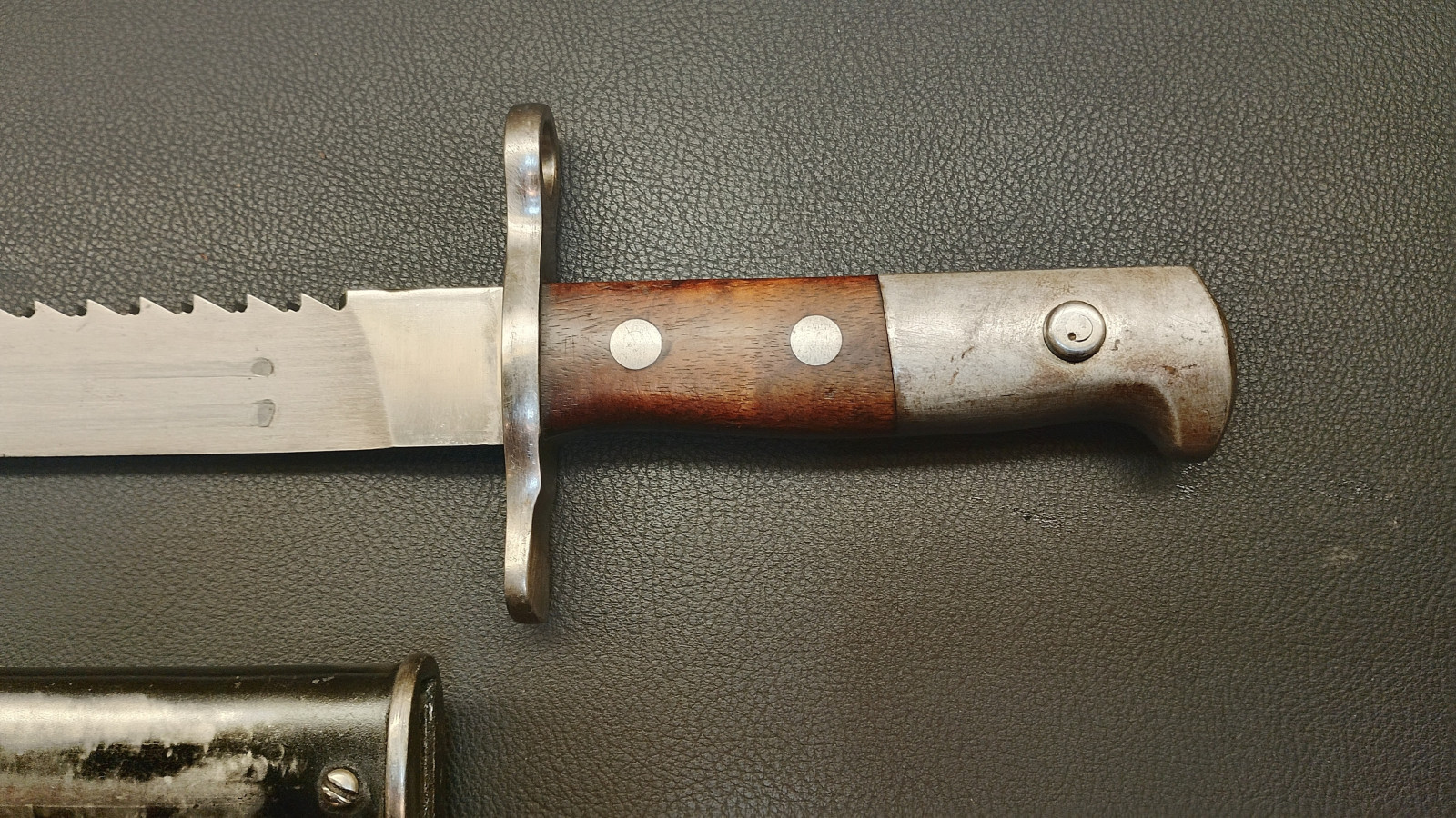 Verkaufe aus meiner Sammlung : Schweizer Pionier Bajonett M1914 mit Sägerücken,Waffenfabrik Neuhausen , Drücker leichtgängig , Klingenlänge 48 cm , Gesamtlänge 61 cm, Koppelschu mit hersteller Prägung,,,J . HOLDEREGGER TEUFEN 1887 . Erhaltungszustand ist Ansichtssache . Bitte schätzen Sie den Zustand des angebotenen Artikels anhand der Bilder selbst ein . Bilder sind Gegenstand der Auktion