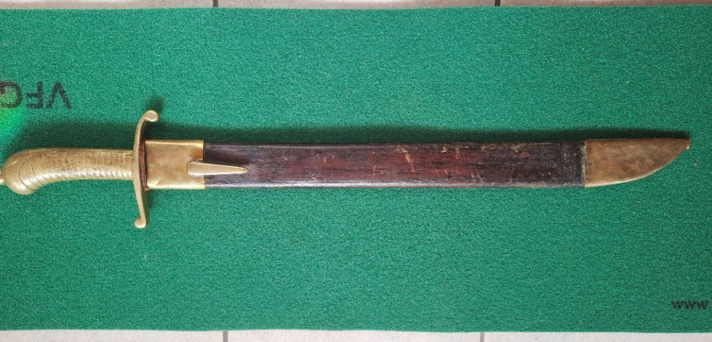 Messinggriffstück, Parierstange auf einer Seite verbogen. Truppenstempel auf Parierstange 5.R.8.86, oben sind noch verputzte Stempel V 1.35, auf dem Knopf die Zahl 19. Auf der Fehlschärfe der Klinge badische Punze und ein Abnahmestempel s unter Krone. Auf Gegenseite Hersteller KNECHT. Dazugehörige schwarze Lederscheide mit Messingbeschlägen, Truppenstempel 4.R.6.136, Ortblech mit badischer Punze. Privatauktion ohne Gewährleistung, ohne Garantie, keine Rücknahme.