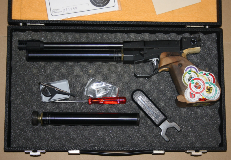 Aus Erstbesitz stammt diese Feinwerkbau Luftpistole Modell C20 im Kal. 4,5mm. Sie kommt mit dem abgebildeten Zubehör und funktioniert einwandfrei.