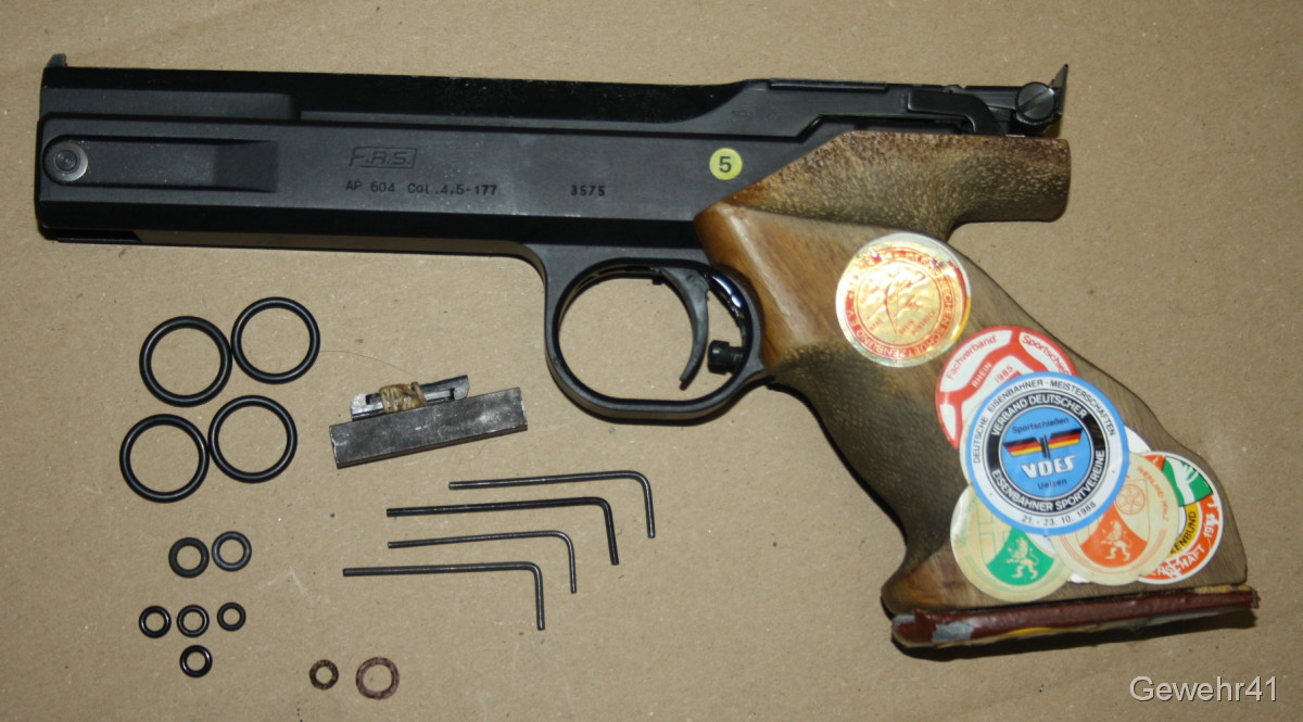 Sie bieten auf diese seltene Match-Luftpistole aus dem Hause F.A.S. Modell AP604 im Kal. 4,5mm. Die Pistole stammt aus Erstbesitz und lag die letzten Jahre ungenutzt im Schrank. Leider hält sie den Druck nicht. Daher Verkauf ohne Garantie und Gewähr.