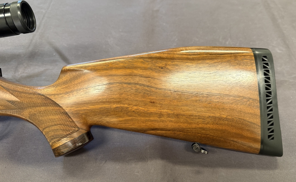 Zustand: Der Schaft zeigt minimale Gebrauchsspuren. Die Brünierung und das Zielfernrohr sind neuwertig. Sehr gute Schussleistung.