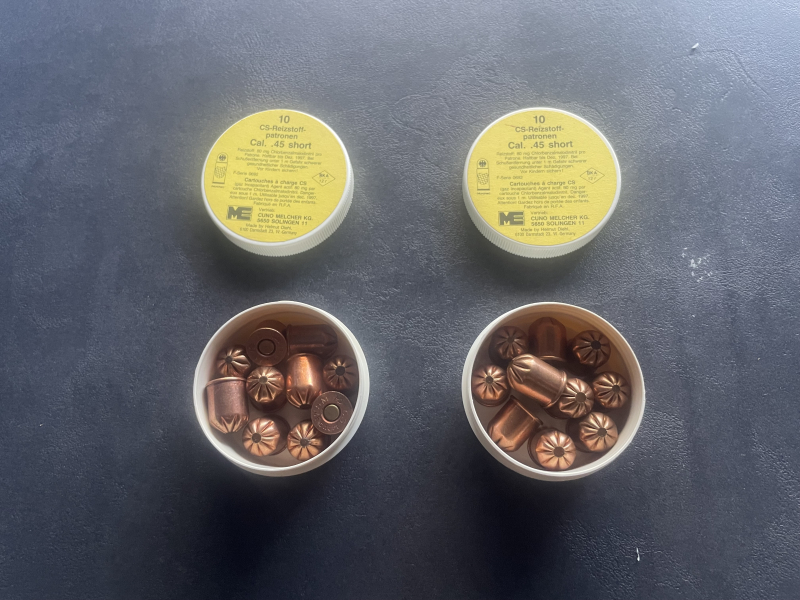 Hallo ich biete euch hier alte 45 Short Reizstoffpatronen von Hersteller SM an!