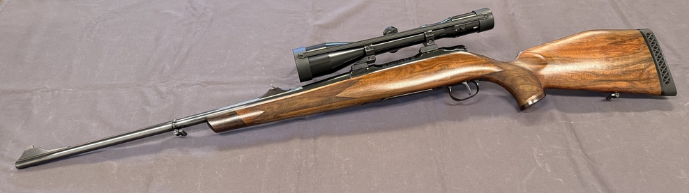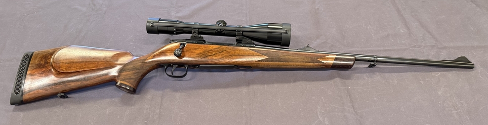 Zustand: Der Schaft zeigt minimale Gebrauchsspuren. Die Brünierung und das Zielfernrohr sind neuwertig. Sehr gute Schussleistung.