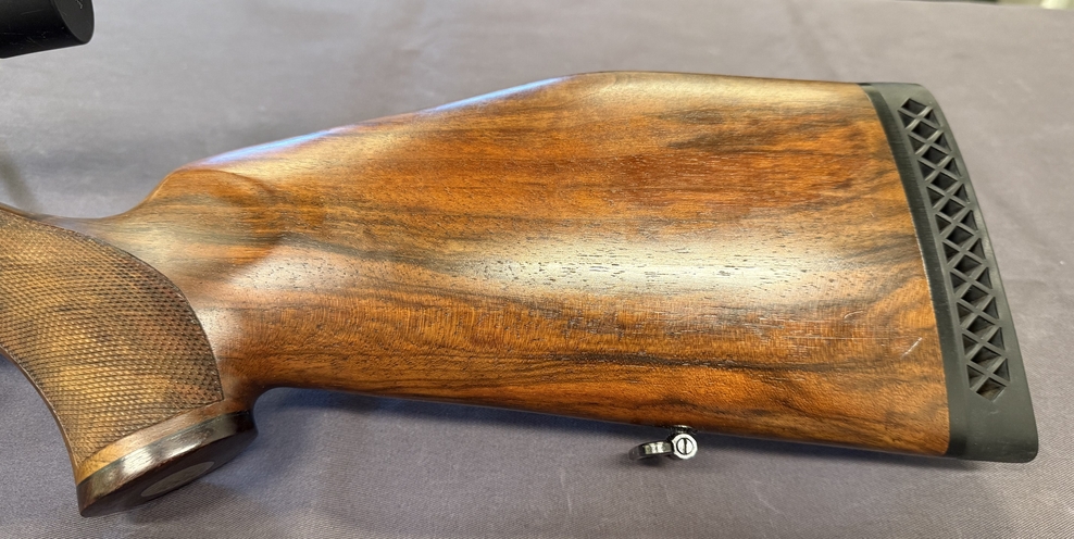 Sehr schön gemaserter und erhaltener Nussbaumschaft in Linksausführung.