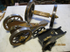 Die schwarze Dikar Lafette ist 27cm lang. Die braune Lafette ist 35cm lang. Die Achse mit den beiden Rädern, haben einen Durchmesser von 20cm. Bestimmt etwas für Bastler. Gebrauchtware, keine Garantie, kein Umtausch.