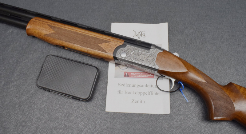 Sicherung/Umschalter auf dem Kolbenhals, Einabzug, mit Ejektoren, Stahlschrotbeschuss. Nußbaumschaft ohne Backe, Gummischaftkappe & Riemenbügelbasen.