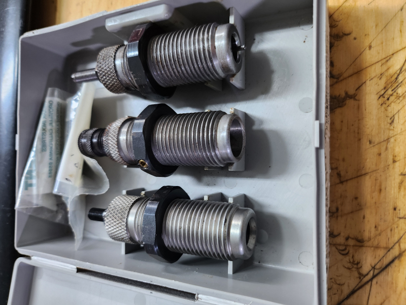Matrizensatz in Carbide Stahl Ausführung. Die Hülsen müssen nicht gefettet werden.Hersteller RCBS, mit 3 Setztsempeln.PRIVATVERKAUF,keine Rücknahme und Garantie.