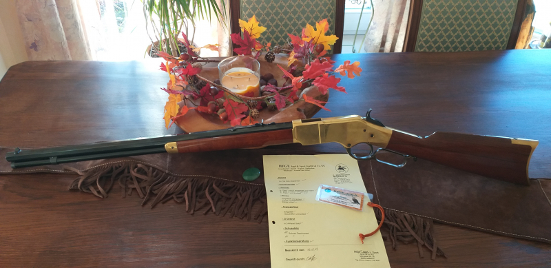 Hege Uberti 1866 Unterhebelrepetierer Gold Line Version - Kaliber 22 lfB - Erstbesitzer - Hammer ,Abzug und Transporteur ist Werkseinstellung - Lauflänge 24 Zoll - Gewicht 4,3 Kg - Achtkantlauf - Abzug und Unterhebel sind buntgehärtet - Verk. dieses seltene ,gut funktionierende ,leicht gebrauchte Gewehr aus Altersgründen