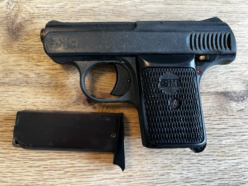 Dabei ist der Original Karton und die Anleitung. Ich vermute genau so wurde die Pistole seiner Zeit ausgeliefert.