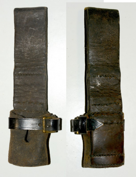 Original Koppelschuh zum portugiesischen Mauser Vergeiro Bajonett Modell 1904, etwas Abrieb an der Lederoberfläche, guter Originalzustand ohne Schäden