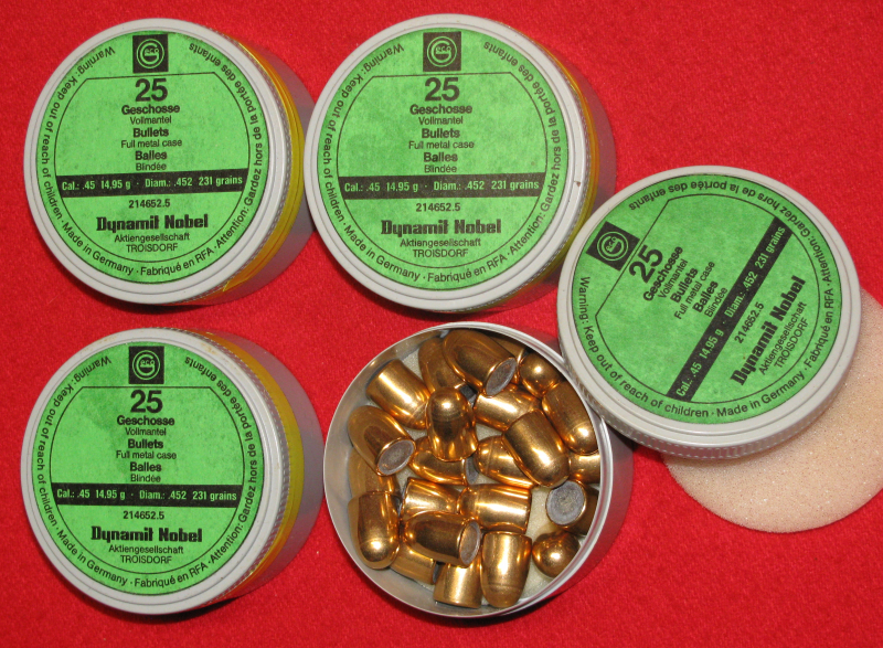 Zum Verkauf kommen 98 Geco Geschosse CAL. 45 / Diam 452 -- 14,95g / 231 grains Vollmantel