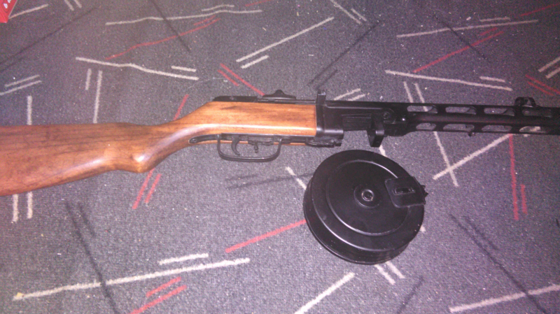 Verkaufe ein PPSH 41 Deko Maschinenpistole von Denix. Der zustand der Maschinenpistole ist gebraucht und in einen sehr guten zustand, es lässt sich spannen und abschlagen und hat keinerlei Beschädigungen, einzig das Magazin hat einige kratzer.(siehe Foto) Das teil kann auch bei wunsch auch angeschaut und abgeholt werden,ansonsten wird es versendet. weiter infos und Fotos auf anfrage.PS:die hellen stellen am Schaft kommen vom Blizlicht. PS: Das Magazin wurde noch einmal geputzt so das diese weissen Flecke auf den vorherigen Foto überwiegent Lagerspuren waren, siehe neues Foto. es bleiben dann noch wenige kleine kratzer. wer so ein dekogewehr in seiner sammlung haben will,sollte hier zuschlagen weil im Handel so eine Gewehr um die 200 euro kostet und ich verkaufe es nur wegen Platzmangel.